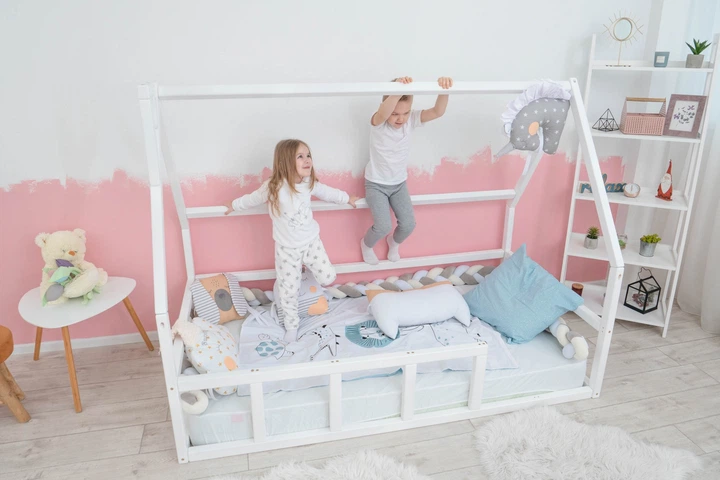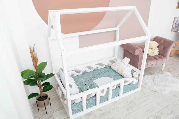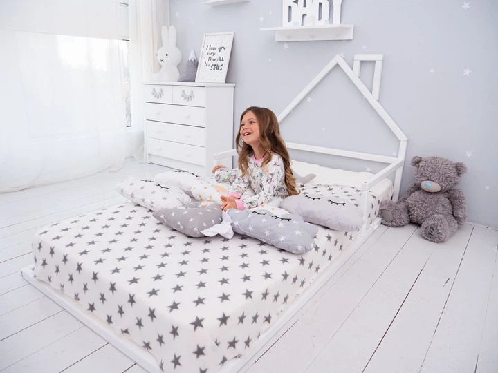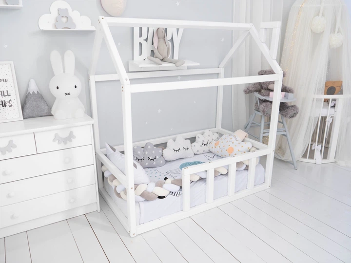 Дитяче ліжко будиночок Монтессорі BUSY WOOD на підлозі Модель 3 200х90 см біле