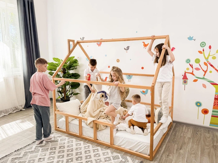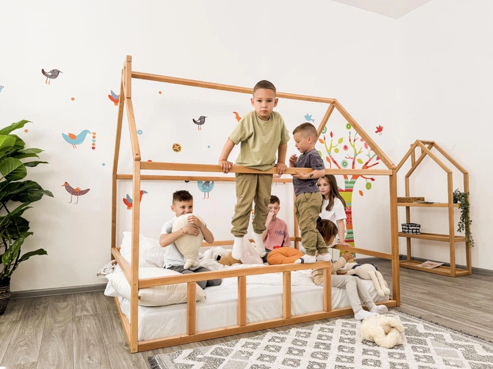 Дитяче ліжко будиночок Монтессорі BUSY WOOD на підлозі Модель 3 200х90 см натуральне дерево