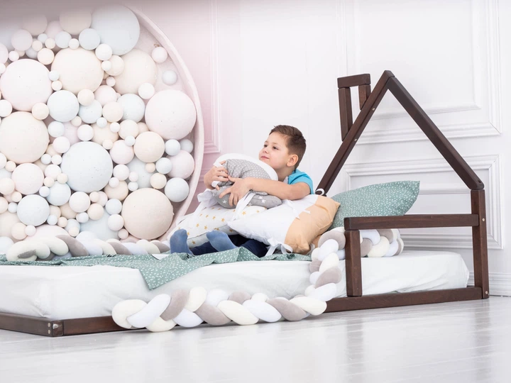 Дитяче ліжко будиночок Монтессорі BUSY WOOD на підлозі Модель 3 200х90 см темне