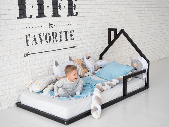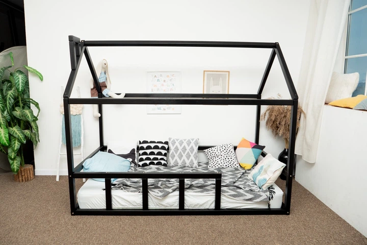 Дитяче ліжко будиночок Монтессорі BUSY WOOD на підлозі Модель 3 200х90 см Чорний