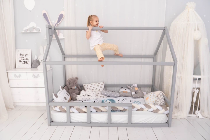 Дитяче ліжко будиночок Монтессорі BUSY WOOD на підлозі Модель 2 200х90 см сірий