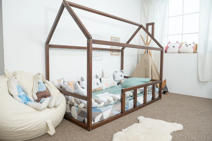 Дитяче ліжко будиночок Монтессорі BUSY WOOD на підлозі Модель 3 120х60 см темне