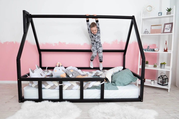Дитяче ліжко будиночок Монтессорі BUSY WOOD на підлозі Модель 1 200х140 см чорний