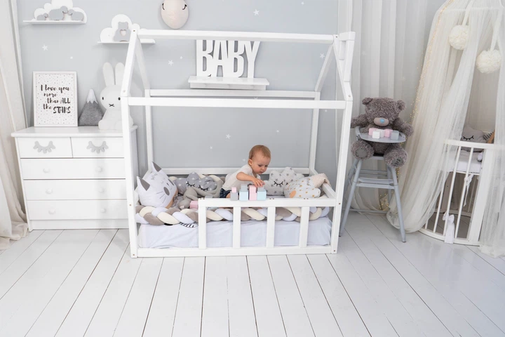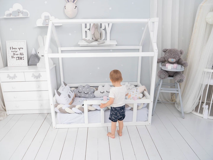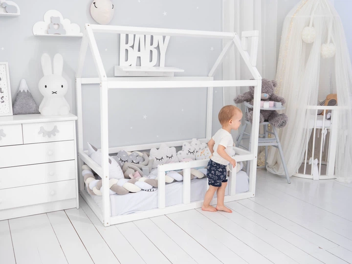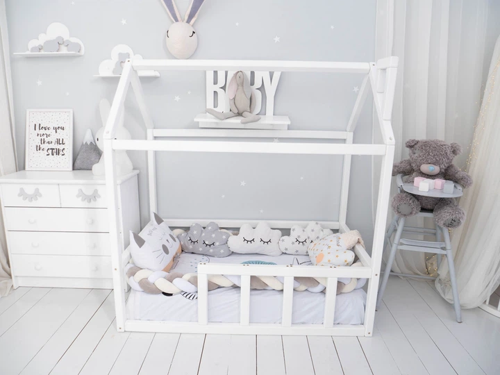 Дитяче ліжко будиночок Монтессорі BUSY WOOD на підлозі Модель 2 160x90 см білий