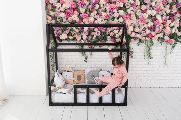 Дитяче ліжко будиночок Монтессорі BUSY WOOD на підлозі Модель 2 140х90 см чорний