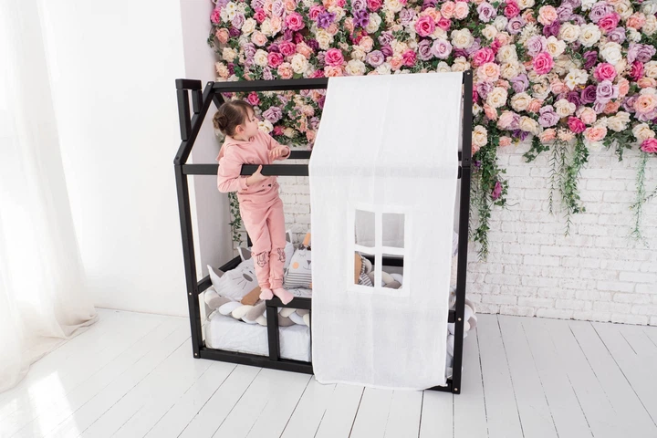Дитяче ліжко будиночок Монтессорі BUSY WOOD на підлозі Модель 2 160x90 см чорний