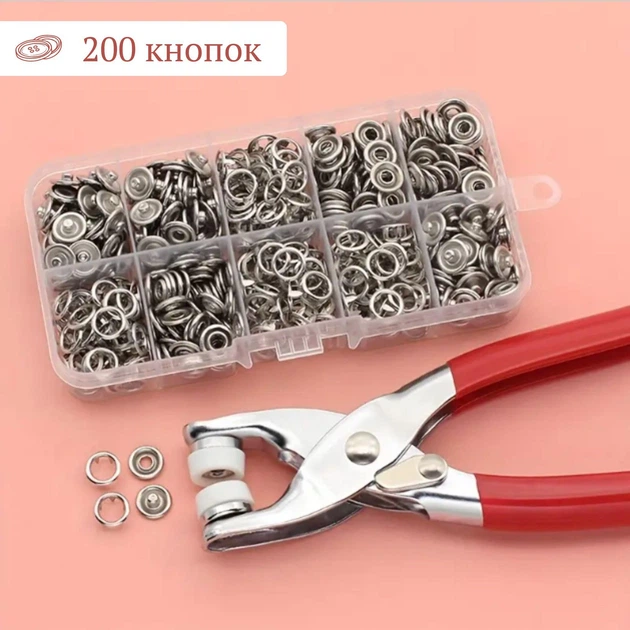 Комплект плоскогубців та металевих кнопок для установки одягу в пластиковому кейсі