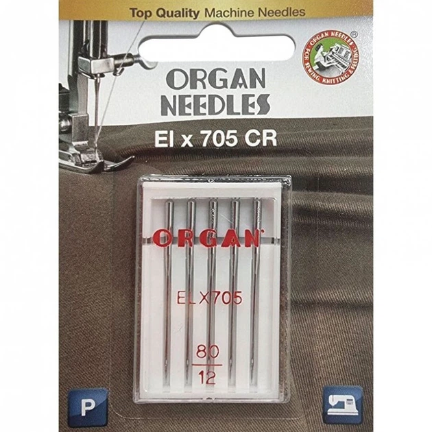 Голки швейні хромовані ORGAN EL705 CR №80 для оверлоку, розпошивалки блістерна упаковка 5 штук (6973)