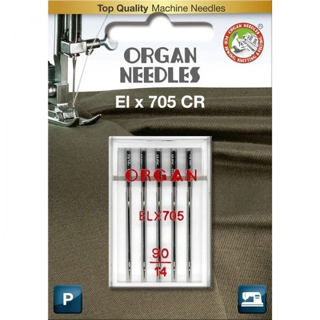 Голки швейні хромовані ORGAN EL705 CR №90 для оверлоку, розпошивалки блістерна упаковка 5 штук (6965)