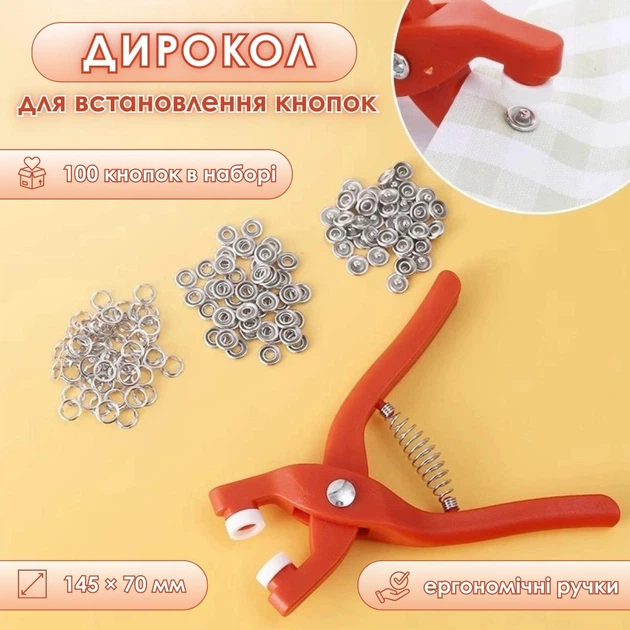 Дирокол для встановлення кнопок ClipiTex, в наборі 100 кнопок