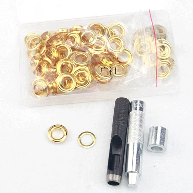 Набір для встановлення люверсів 10 мм 3 інструменти + 100 люверсів золото (5598)