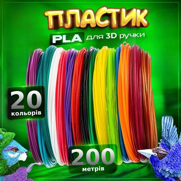 PLA пластик для 3D ручки Пластмаса для 3д ручки Кольоровий набір пластику 20 кольорів 200 метрів