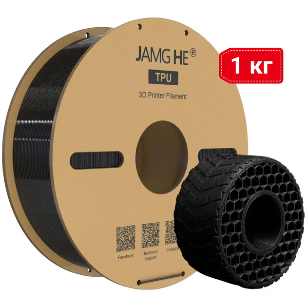 Пластик JAMG HE TPU-95A Black Чорний 1,75мм Вага: 1 кг