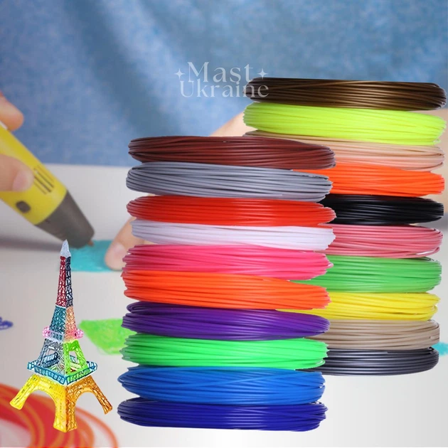 Пластик для 3д ручки PLA 1.75 мм 200 метрів ( 20 кольорів по 10 метрів), кольоровий набір безпечного 3D пластику, нитки для