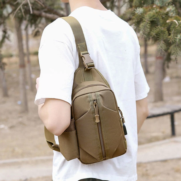 Тактична сумка через плече - водонепроникна сумка з кордури на 4 кишені. Колір: койот