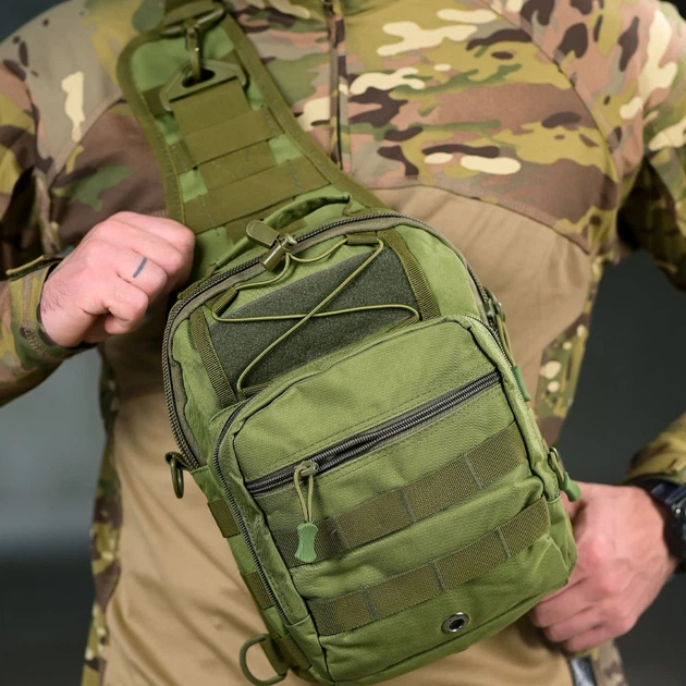 Нагрудна сумка-слінг Cordura 1000D з ПВХ просоченням олива розмір 23,5х6х12 см