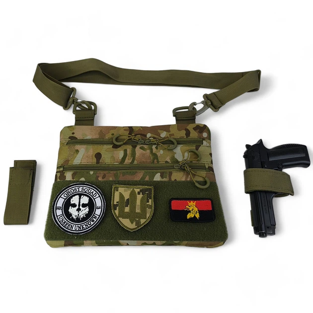 Тактична Сумка Чоловіча Кобура Мультикам Наплічна З Липучкою Для Шевронів Зелена (292845)
