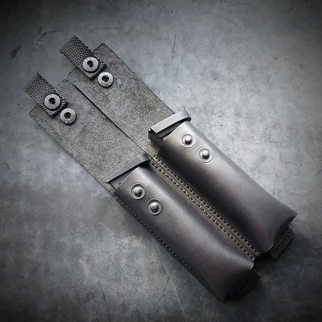 Шкіряний паучер підсумок ПЕЛАМЕ на 2 магазини АПС чорний