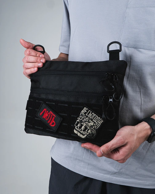 Сумка-месенджер через плече EDC "Вікінг 2.0" з патч панеллю Чорна 29х23х7 см
