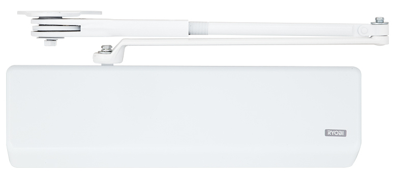 Дверний доводчик RYOBI накладного типу з паралельною тягою призначений для автоматичного закриття дверей вагою до 200 кг і шириною до 1400 мм. Встановлюється на двері без додаткової настройки. Застосування доводчика дозволяє забезпечити надійне закриття дверей і значно зменшити знос дверних петель і іншої дверної фурнітури. Цей доводчик підтримує функції регулювання швидкості