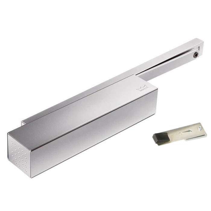 Дверний доводчик ABLOY накладного типу призначений для автоматичного закриття дверей вагою до 100 кг і шириною до 1250 мм. Встановлюється на двері без додаткової настройки. Застосування доводчика дозволяє забезпечити надійне закриття дверей і значно зменшити знос дверних петель і іншої дверної фурнітури. Цей доводчик підтримує функції регулювання швидкості закривання стулки.