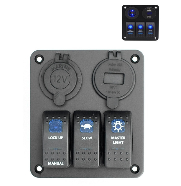 Панель перемикання на 3 кнопки з 4.2 A USB Вольтметр та прикурювач