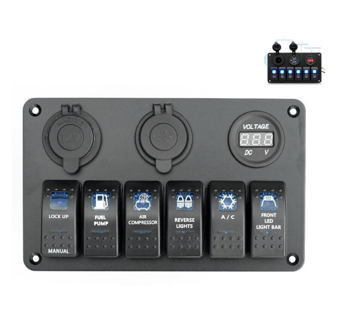 Панель перемикання на 6 кнопок з вольметром USB та прикурювачем