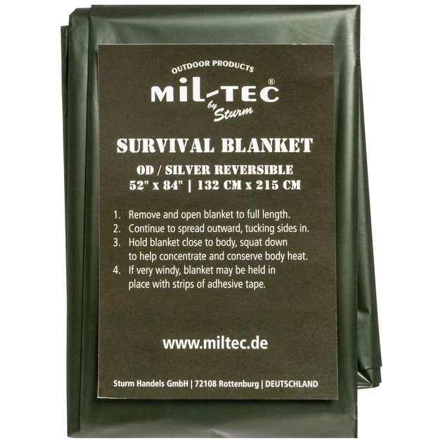 Ковдра рятувальна Sturm Mil-Tec Survival Blanket Olive 215 x 130 cm (16024500)