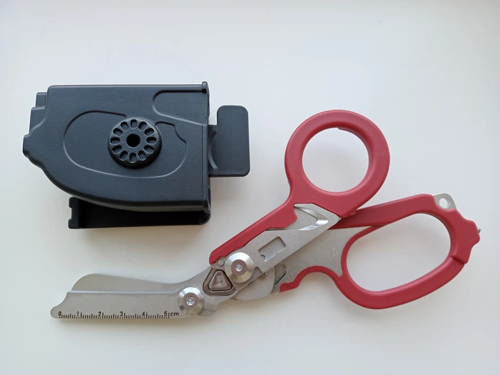 Ножиці тактичні складні парамедичні 6в1 з чохлом червоні