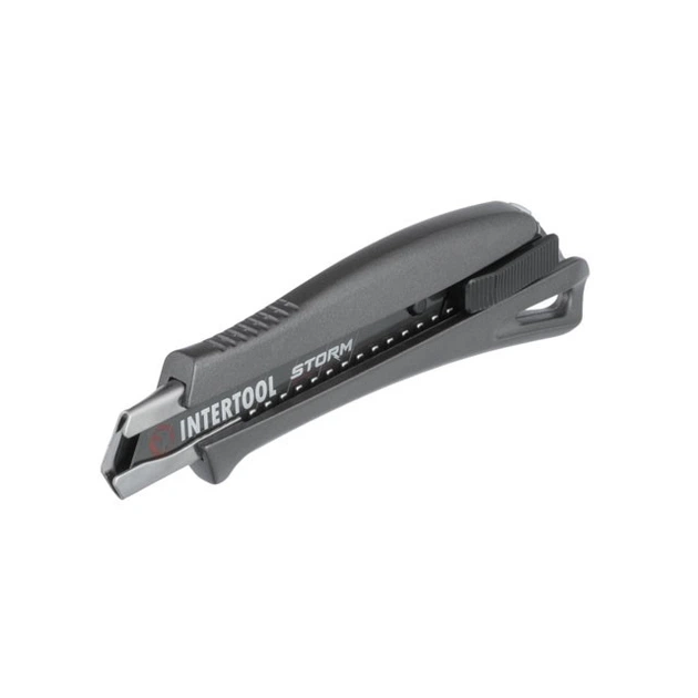 Ніж сегментний мультифункціональний 18мм, алюмінієва рукоятка, металева напрямна Storm INTERTOOL