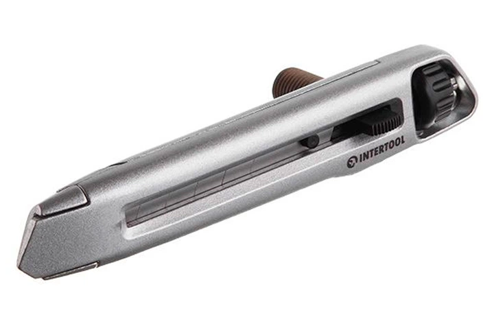 Ніж Intertool 18 мм металевий з гвинтовим фіксатором леза для різання паперу та картону відламний ніж (IT-DR11N)