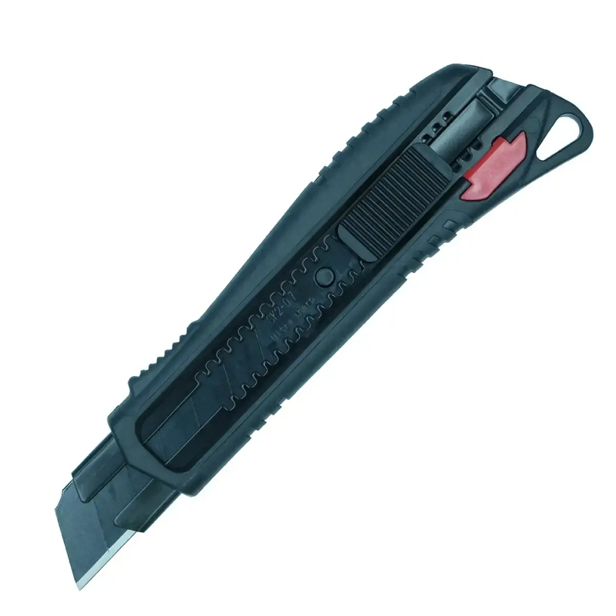Ніж 25 мм, серіїя PREMIUM, DORA Cutter, Razar Black Blade, гвинтовий фіксатор, гартований екстрастійкий корпус. Ніж для екстримальних умов на будівельному майданчику. Рукоятка ножа стійка до впливу лугів, ацетону, розчинників і нафтопродуктів. Автоматична фіксація леза.