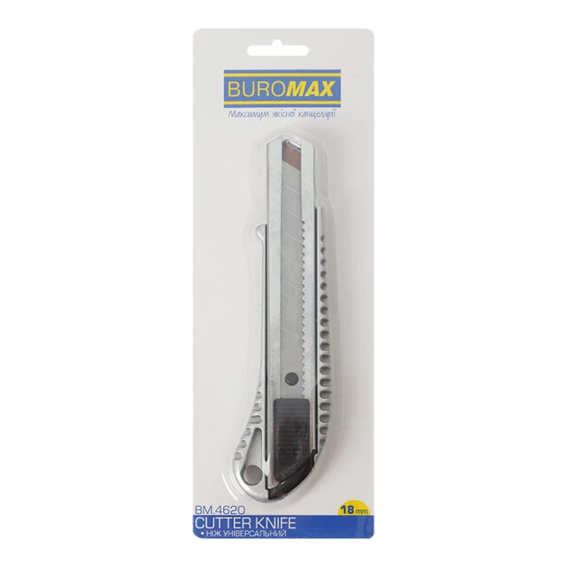 Ніж канцелярський BuroMax з лезом 18 мм металевий корпус (BM.4620)