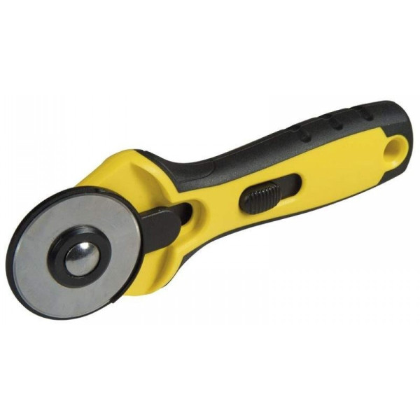 бливості, додаткові характеристики/- Ніж з круглим лезом діаметром 45 мм. - Ідеальний для криволінійних різів тканини - Рукоятка ергономічної форми, виконана з двох матеріалів для виключення ковзання в руці, зручна для роботи правою і лівою рукою - Високоміцне кругле поворотне лезо (Stht0-11942) відшліфоване і заточене