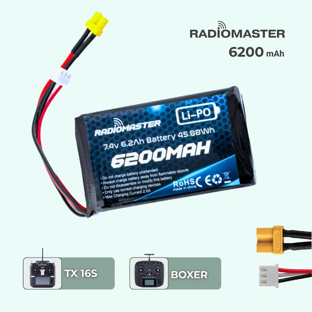 Акумулятор RadioMaster 6200 mAh 7.4V 2S Li-PO XT-30 для пультів керування TX16S, BOXER HP0157.BATT-6200-2S