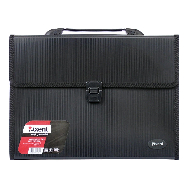Портфель-картотека Axent А4 на 12 відділень пластиковий на замку чорний (1607-01-A)