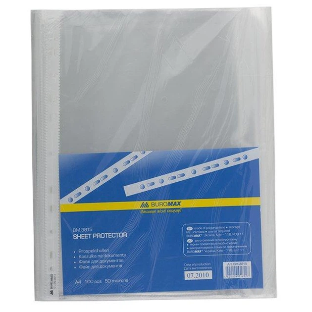 Прозорі файли А4+ BuroMax глянсові 50 мкм 100 шт BM.3815