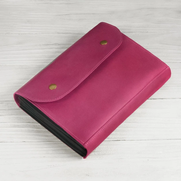 Папка для документів А5 SKLKT із натуральної шкіри з розділювачами рожева