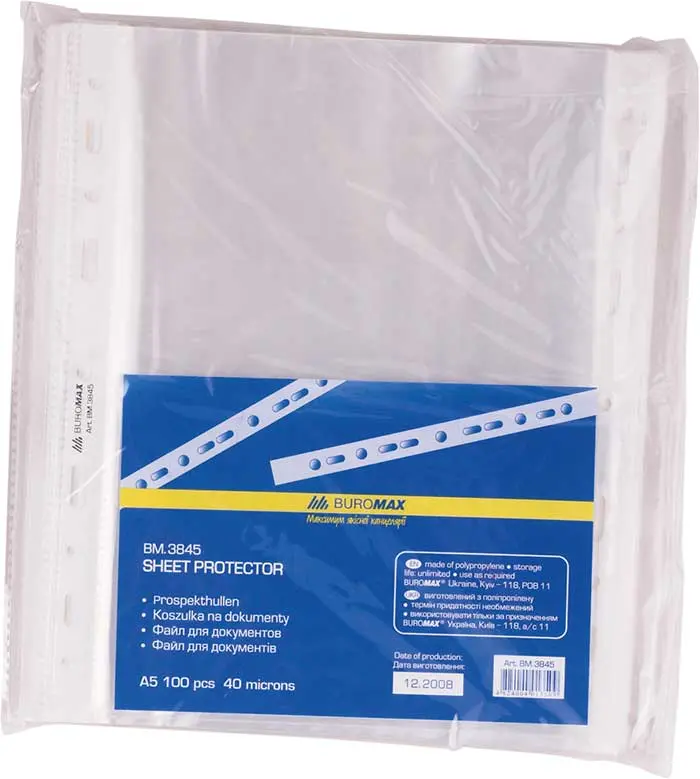 Файл для документів Buromax А5, 40 мкм, 100 шт.
