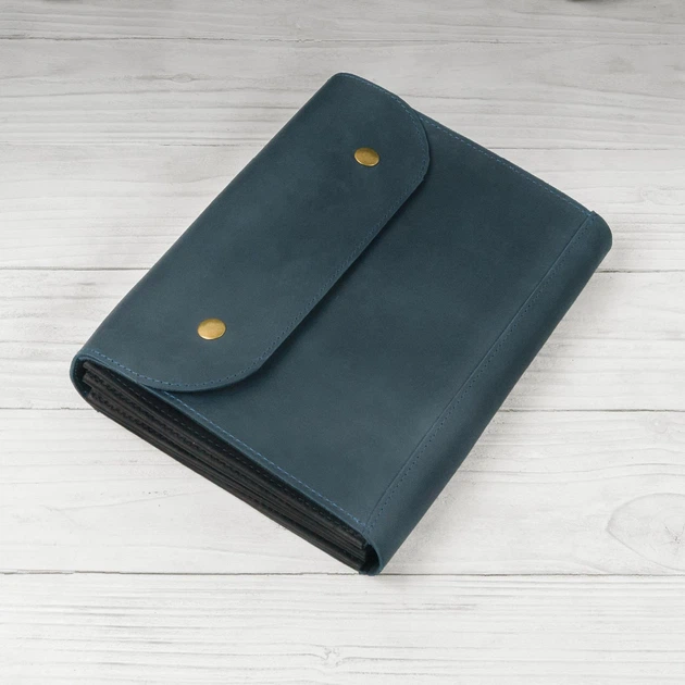 Папка для документів А5 SKLKT із натуральної шкіри з розділювачами темно-синя