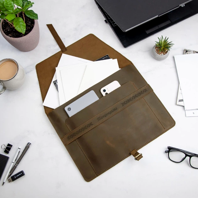 Шкіряна папка для документів з гравіюванням, Walnut, Malina Leather