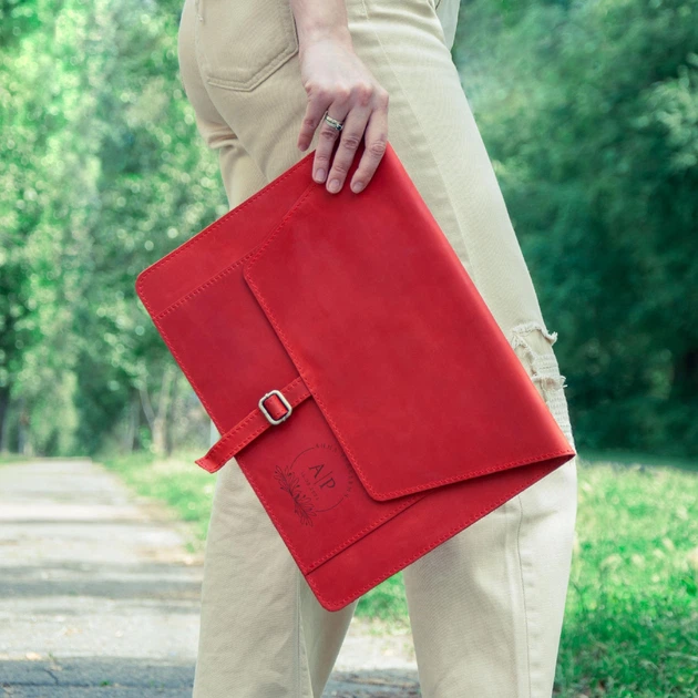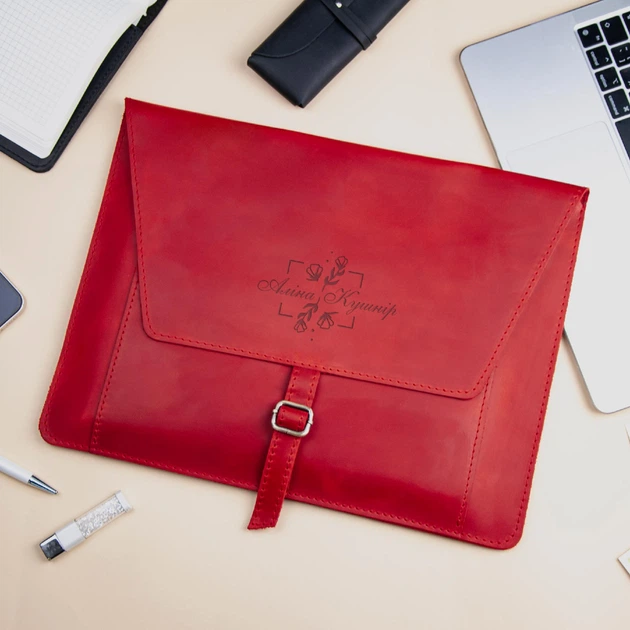Шкіряна папка для керівника, шкіряна папка з ім'ям, папка зі шкіри з гравіюванням, Coral, Malina Leather
