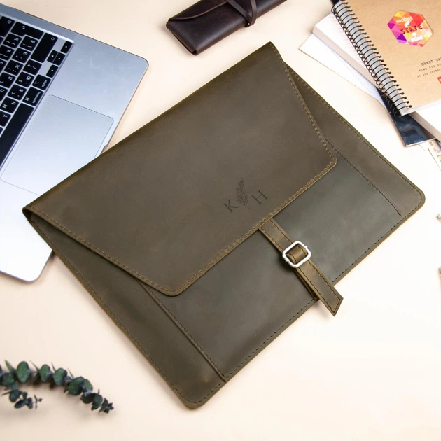Шкіряна папка з ініціалами, органайзер-папка з ініціалами, Walnut, Malina Leather