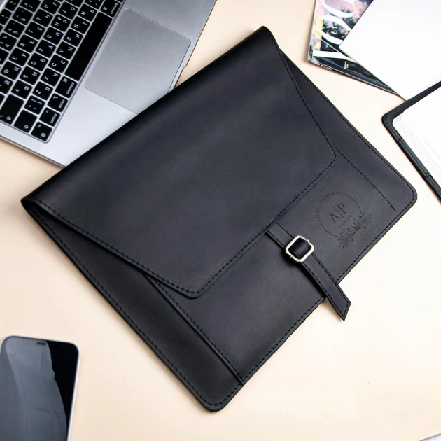 Шкіряна папка для керівника, шкіряна папка з ім'ям, папка зі шкіри з гравіюванням, Black, Malina Leather