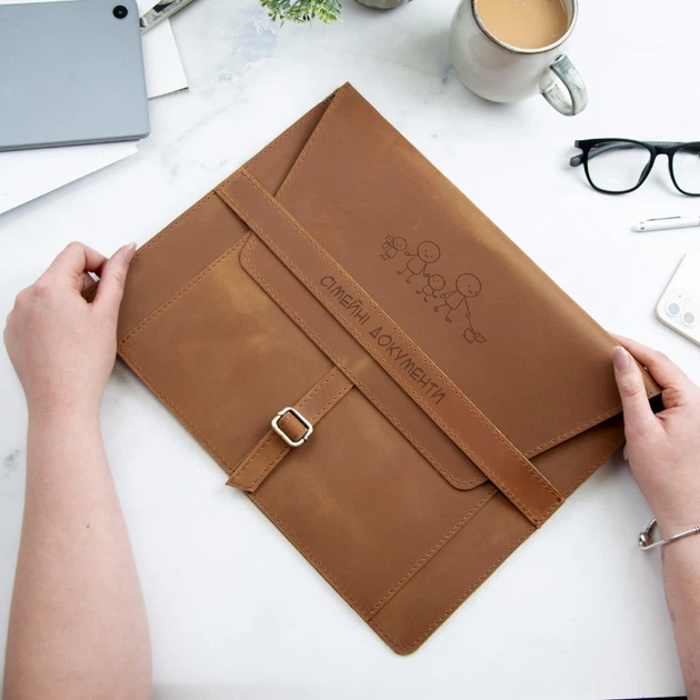 Шкіряна папка для сімейних документів з гравіюванням, Whisky, Malina Leather