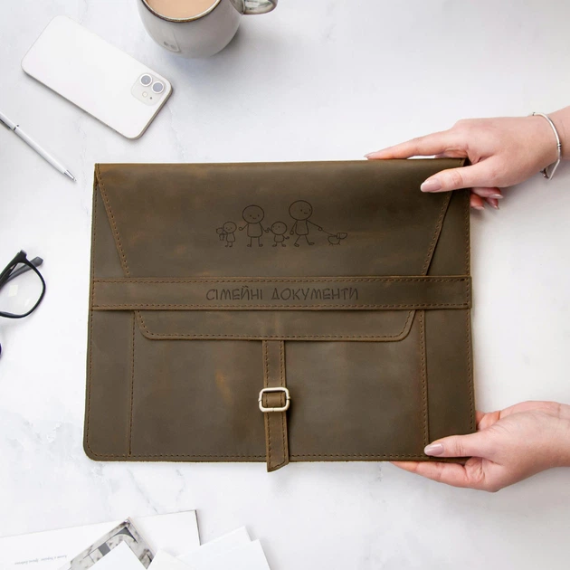 Шкіряна папка для сімейних документів з гравіюванням, Walnut, Malina Leather