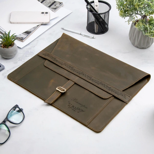 Шкіряна папка для документів з гравіюванням, Green, Malina Leather