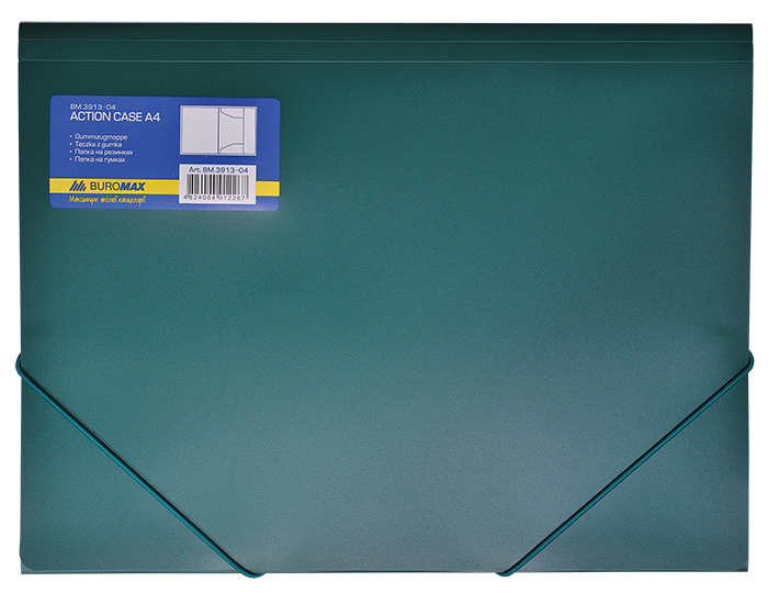 Папка на гумках, А4, глянсове непрозоре. пластик, зелена