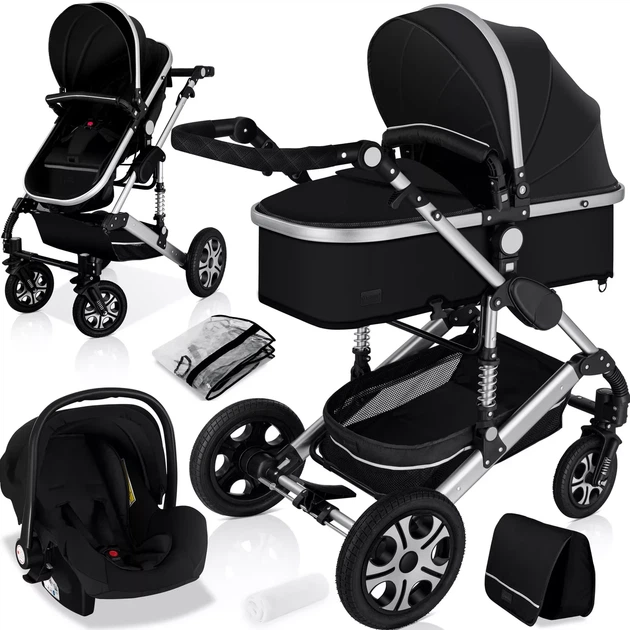 Дитячий візочок з автокріслом 3в1 KESSER 94 x 64 x 119 см чорний з срібним Німеччина