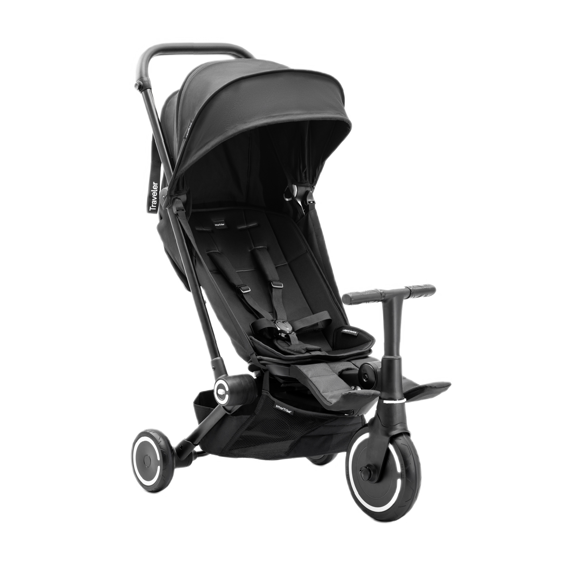 SmarTrike Traveler — це активна прогулянкова коляска-велосипед для дітей, створена для прогулянок як вдома, так і в подорожах. Ідеальна для маленьких дослідників від 6 місяців, вона підходить як для відпочинку на ходу, так і для яскравих пригод. Завдяки керму у стилі трицикла, яке зручно тримати маленькими ручками, малюк зможе «керувати» разом із вами — і кожна прогулянка стане